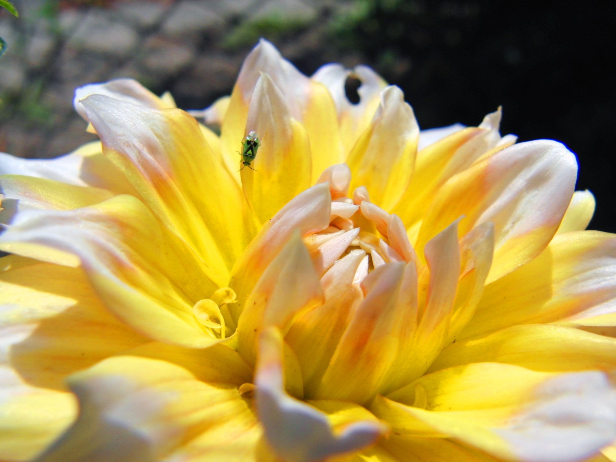 Grüne Feuerwanze in gelber Blütenumgebung