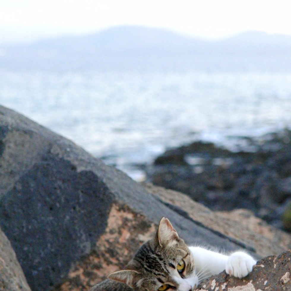 Cat (on a) block (of stone @ the sea)