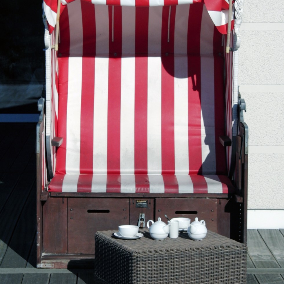 roofed wicker beach chair and tea
